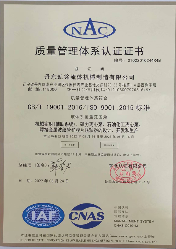丹東凱銘流體機械制造有限公司坐落于風景旖旎的邊境江城---遼寧丹東,是一家集設計、制造、銷售、服務于一體的流體機械專業(yè)制造公司,主要產品有:機械密封及輔助系統、膜片聯軸器、焊接金屬波紋管、泵及壓縮機配件。產品廣泛應用于石油煉制、化工、電力、冶金、食品、制藥、印染、煤礦、船舶制造等領域。